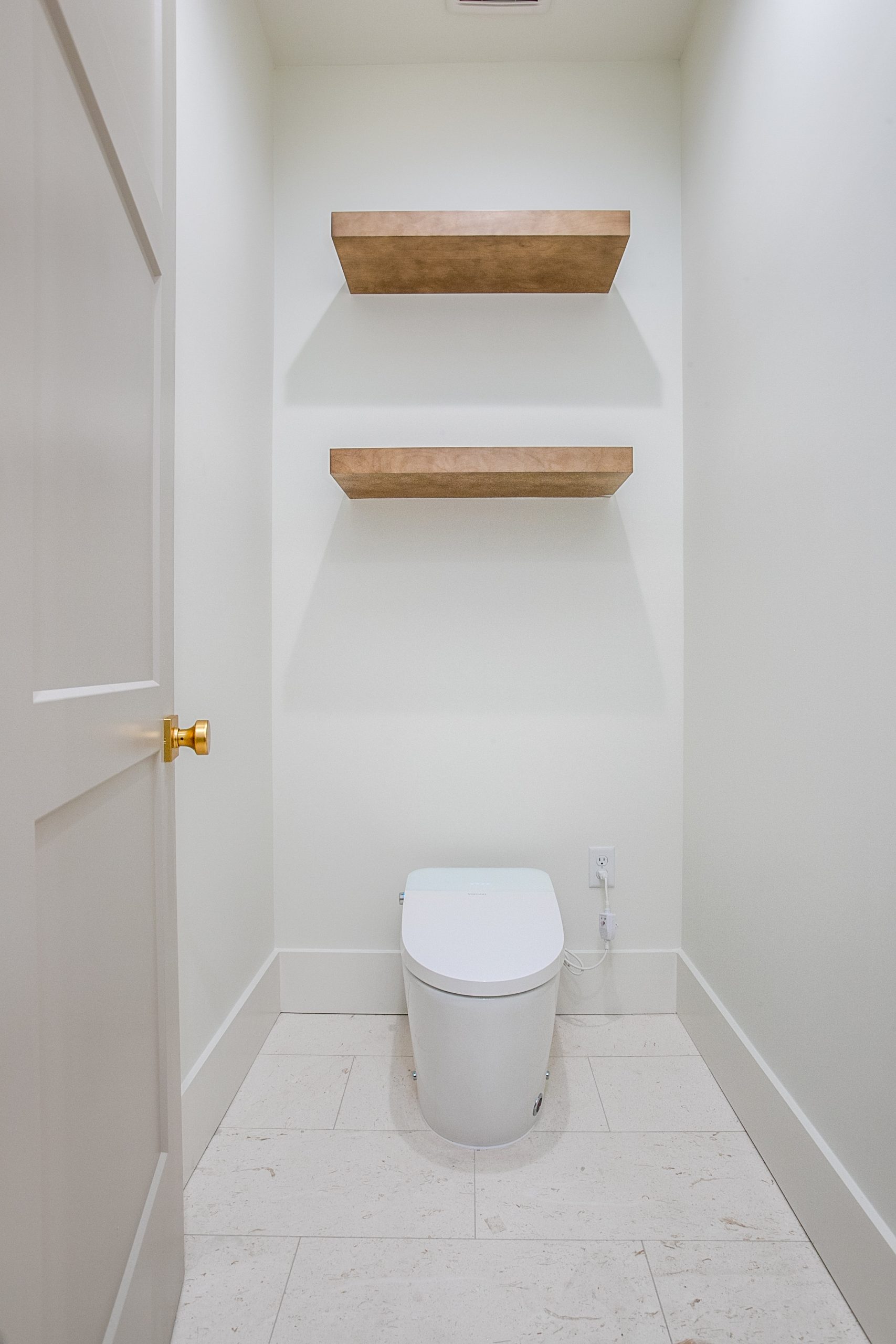 - The oversized primary closet boasts custom shelving for optimal luxury and organization.