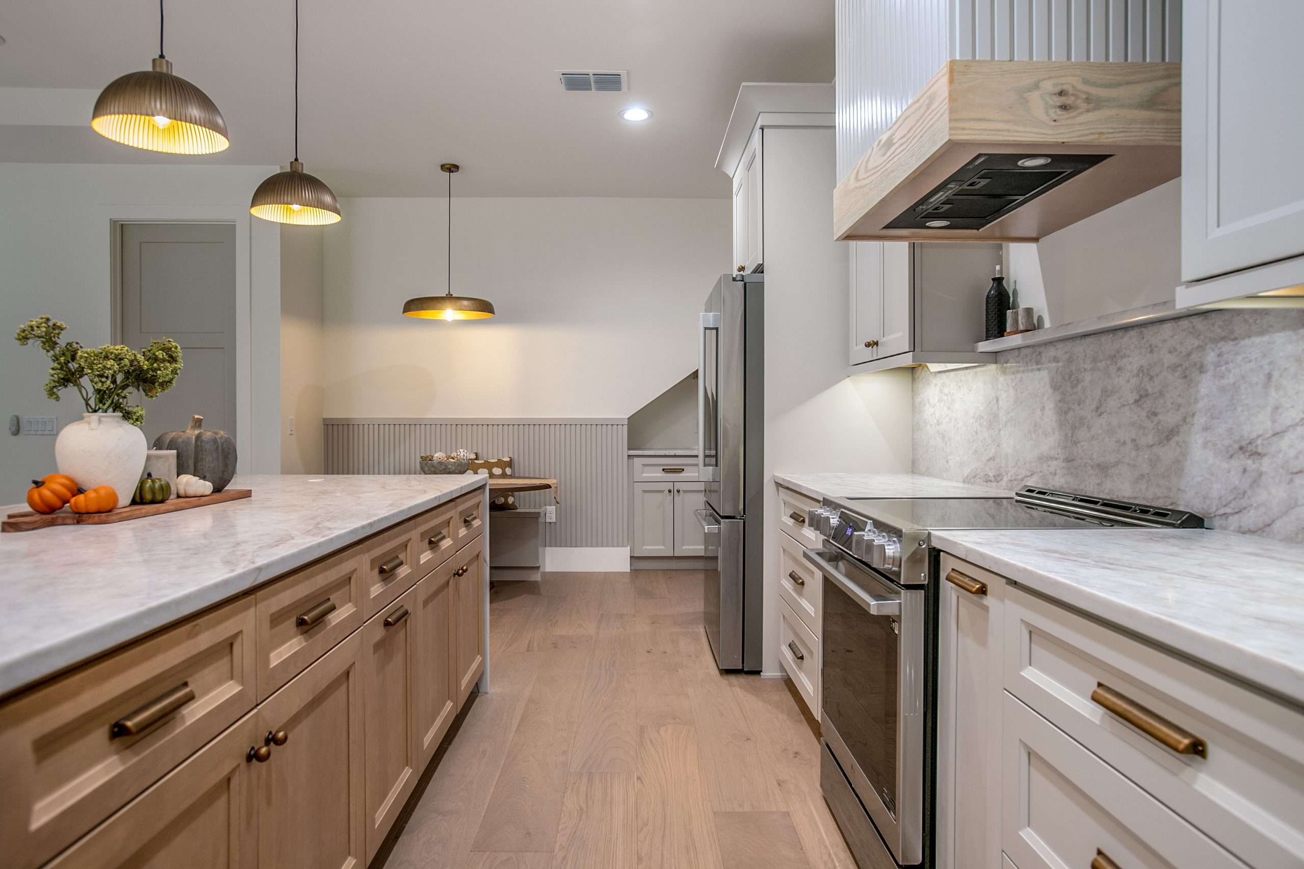 - Seamless Flow: Just off the kitchen, a dry bar with a wine refrigerator flows into a built-in banquette, ideal for casual dining and hosting.